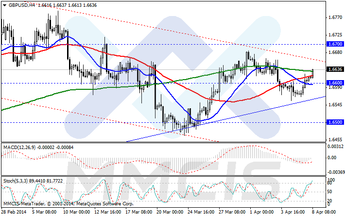 По-прежнему существенных изменений в технической картине пары евро/доллар мы не наблюдаем: пара продолжает торговаться в пределах границ нисходящего канала, ниже скользящих средних с периодом 200, 50 и 20, расположенных по мере убывания. Это также указывает на преобладание «медвежьего» настроения. В качестве подтверждающего сигнала, указывающего на продолжения нисходящего движения, может выступить очередной пробой и фиксация ниже отметки 1.3700.